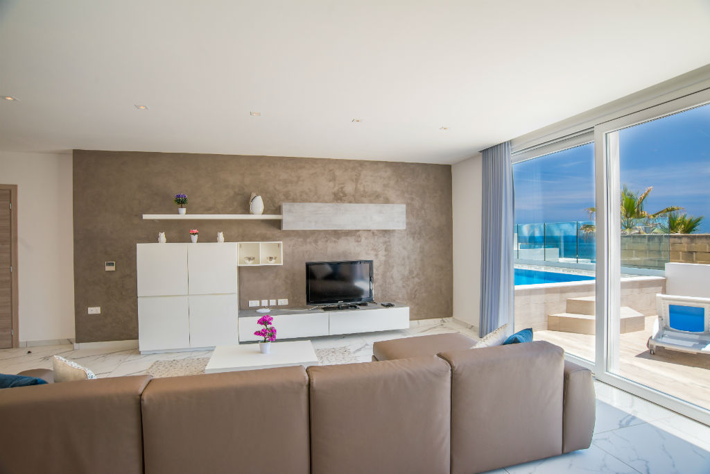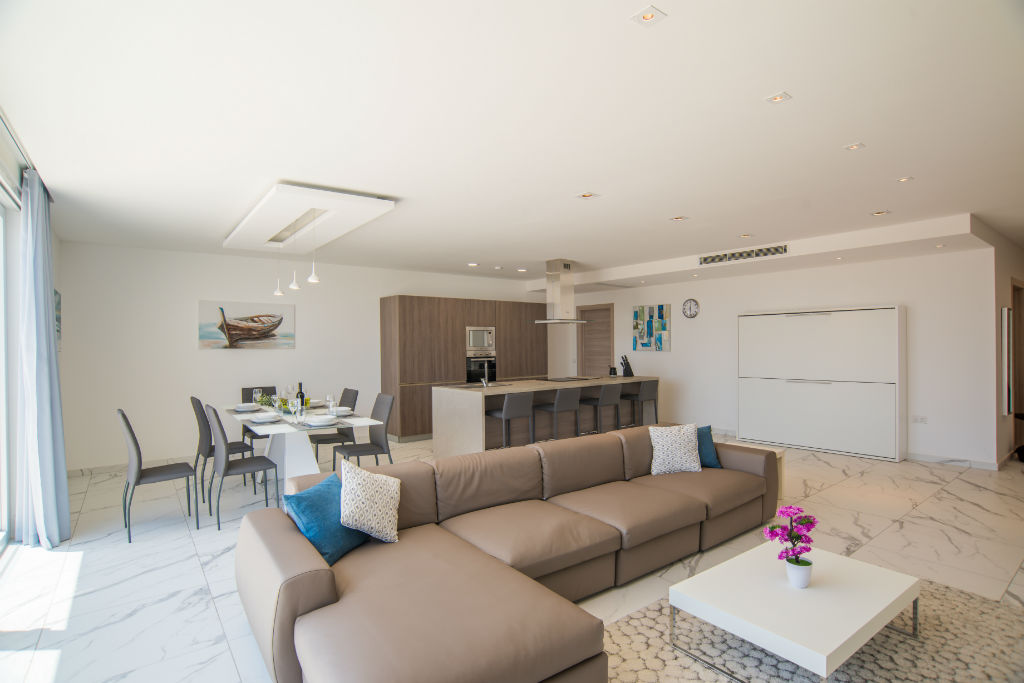This villa apartment forms part of a prestigious block of 3 properties all with their own private pool accommodating up to 10 persons with the possibility to add 2 more beds. It comprises of 4 bedrooms , 2 bunk beds and 4 bathrooms – 3 of which are en-suite.The property is equipped with lift and has all necessary amenities including cable TV , washing machine, dishwasher and microwave. The pool is set in the private terrace of the property still leaving ample space for a relaxation area.