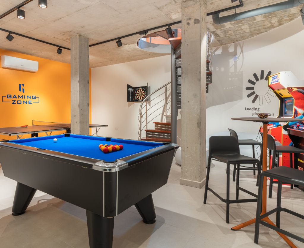 Take a dip in the refreshing communal pools or seek entertainment, our exclusive games room awaits! Challenge your friends to a game of pool, table tennis, or darts, or indulge your inner child with our selection of arcade games.